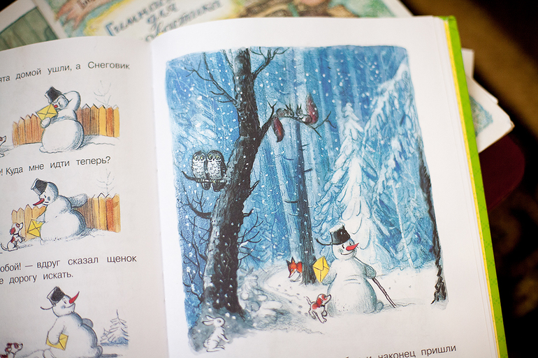 Сутеев "Сказки и картинки" мелькает у нас в каждом дневнике. Это одна из книг, которую готов читать все время. Никогда не надоедает. А капризную кошку так наизусть знает. В связи с новогодними праздниками очень полюбилась сказка про елку. И вообще Сутеева в каждый дом!)
