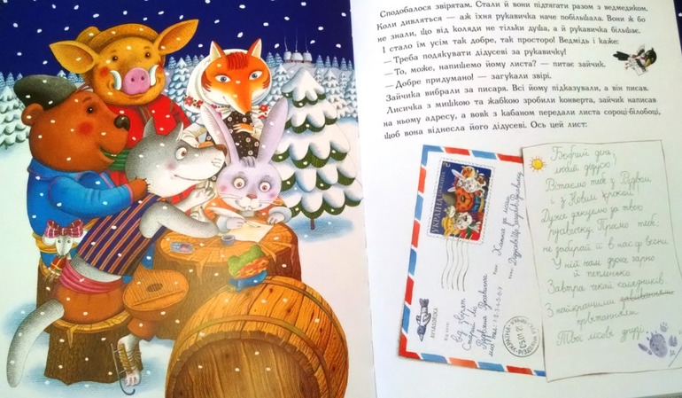 Эта книга - вводная к Рождеству - моя попытка №2. Начинается, как народная Рукавичка, а потом звери пишут дедушке письмо, чтобы тот не забирал рукавичку до конца зимы. А далее описываются некоторые украинские Рождественские традиции. Для первого знакомства с праздником нам хватило с головой.