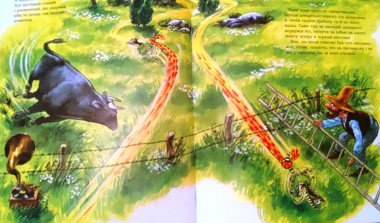 Первый подход к этой серии я пробовала делать еще в прошлом году, в дочкиных неполных 3 года. И хоть на тот момент она могла высидеть очень длинные тексты (например, за раз прочесть всего желтого Кротика), Петсон был явно рано. И вот, неожиданно для мамы, ребенок повзрослел, понимает юмор, умиляется котенку. А я наслаждаюсь замечательной адаптацией - некоторые словечки для меня новы (например, глизявка), что не может не радовать.