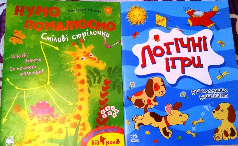 Логічні ігри мне не очень понравились. Совковые иллюстрации, и опять же...с Кумоном мало чего сравнится. Но это, скорее, связано со спецификой восприятия отдельного ребенка. У меня дочка неделю лабиринты разгадывает, неделю прописи пишет, неделю цифры. Так ей больше нравится, а мне остается нужные листики подсовывать.