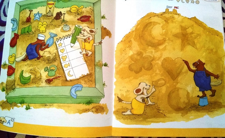 Мы плотно сидим на тетрадках Кумон.До этой еще не дошли, поэтому покажу просто для тех, кто наслышан, но хочет глянуть развороты. Иллюстрации очень симпатичные.