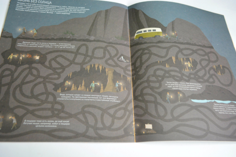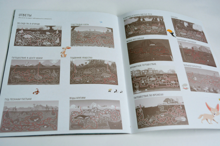 пустыня, шахта, воды Арктики, Большой Барьерный Риф, тропические леса, пещеры и даже канализационная система. Всего в книге 13 различных лабиринтов,