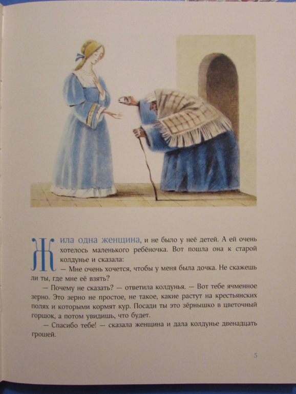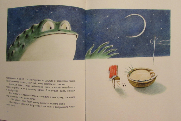 Сначала Дюймовочка жила у женщины, у которой не было детей. Затем ее выкрала жаба, сынок которой захотел жениться на маленькой девочке. Позже женихом был жук, а потом - крот…