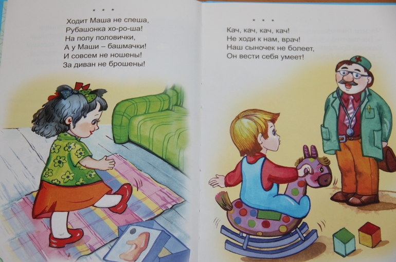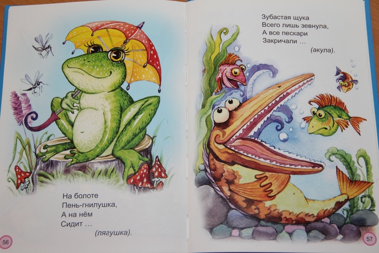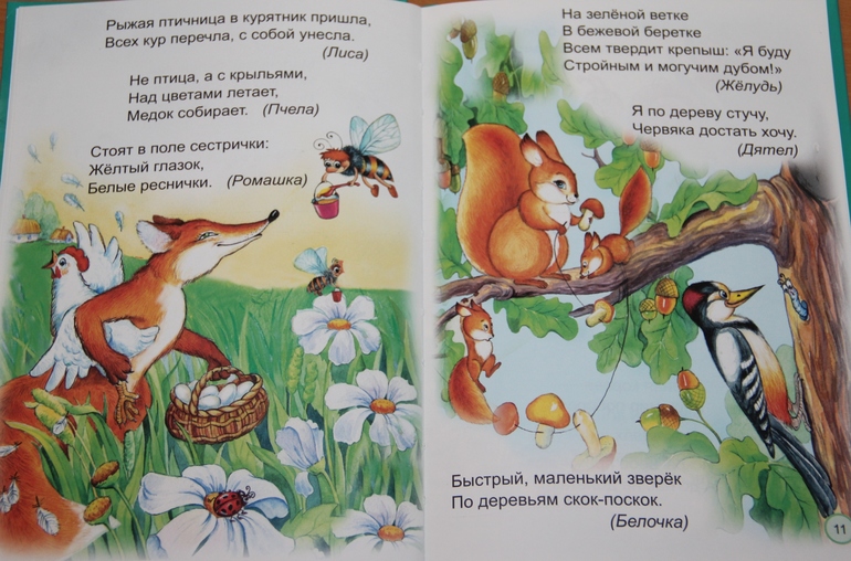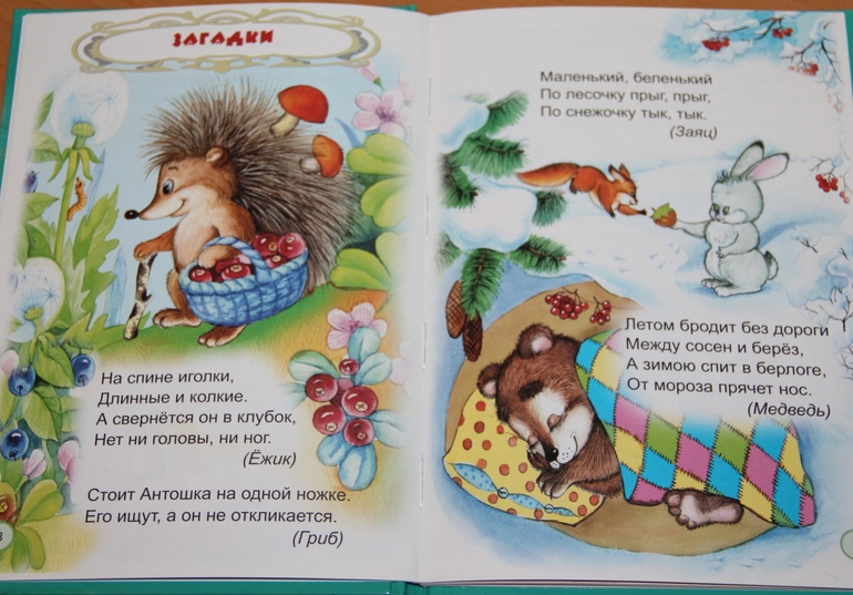 Книжки выбирала дочка самостоятельно. Ее, естественно, привлек их внешний вид и качество иллюстраций. Текст в книгах простой, но тем не менее интересный для малышей. Особенно дочке нравятся загадки. Она несколько дней подряд просила снова и снова ей их загадывать и даже некоторые сама загадывала папе.