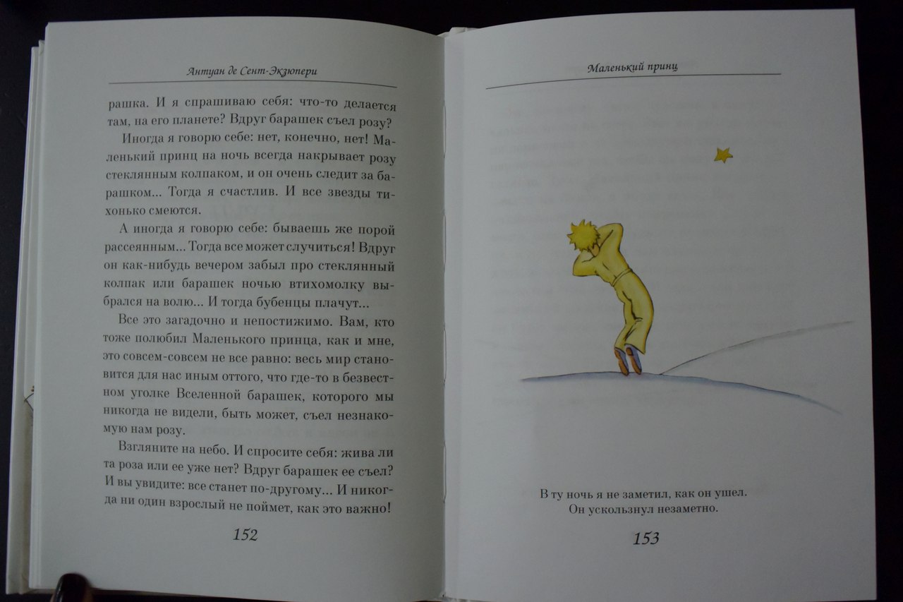 Это очень стоящая книга. Мама давно предлагала, а я долго не хотел читать. Понимаю, что одновременно ошибался, что не читал, и нет. Если бы я книжку не прочел, я бы не переживал столько грусти. Но в то же время я бы не научился жить, как Маленький принц. Я понял, как надо жить. По его примеру."