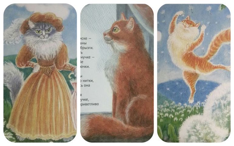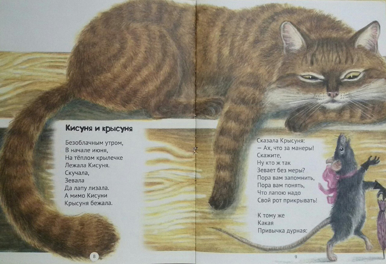 Увидев этого очаровательно кота с гитарой, дочка решила, что книгу надо брать. Однако узнав, что в книге стихи, она свой пыл поумерила и долго размышляла возьмем мы ее или нет. В итоге было принято решение книгу взять.