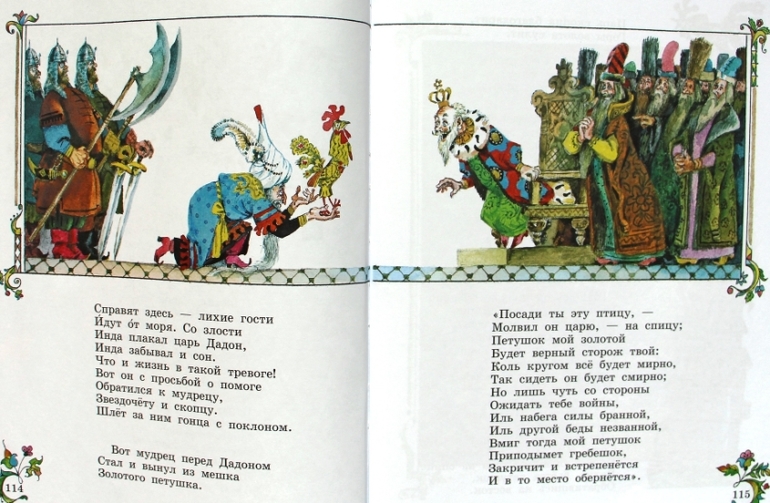 Сказки вы все знаете: «Сказка о царе Салтане, о сыне его славном и могучем богатыре князе Гвидоне Салтановиче и о прекрасной царевне Лебеди», «Сказка о рыбаке и рыбке», «Сказка о попе и работнике его Балде», «Сказка о мертвой царевне и о семи богатырях», «Сказка о золотом петушке» и еще Лукоморье.