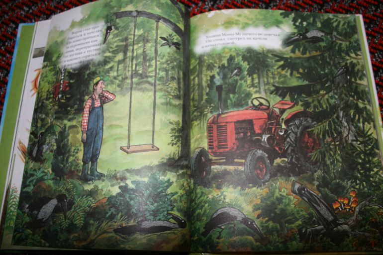 В книге пять историй. Последняя, про рождество и елки, не так динамична и захватывающая, как остальные, поэтому ребенок чаще всего предпочитает первые четыре.