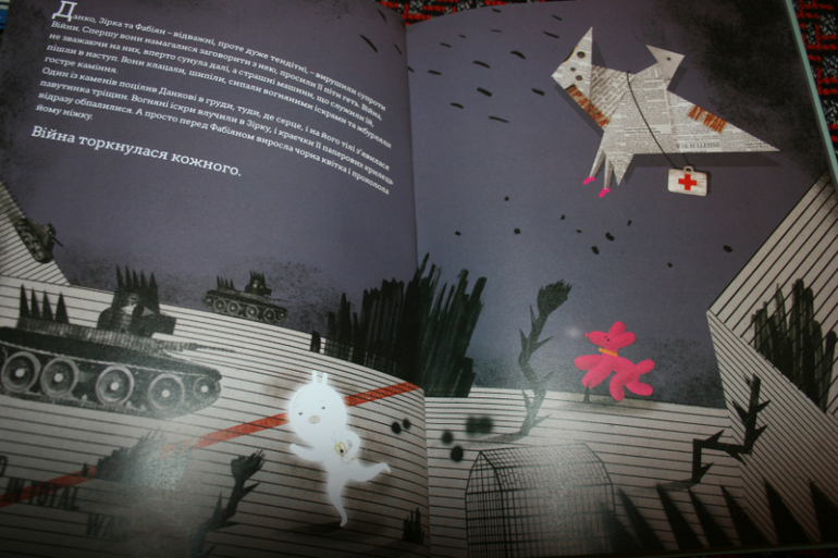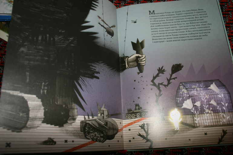 "Войну" взяла полистать в Ашане. На нее была акция, саму книгу никогда не видела ранее. Ребенок заинтересовался "человечком-лампочкой" и попросил купить. Дома тут же о ней вспомнил. Огромный интерес, множество недетских вопросов... Очень сильная детская книга-картинка. Не знаю, выдала бы ребенку сейчас, прочитав заранее всю историю, или припрятала б еще на пару лет. Я оказалась неготова обсуждать с ним эту тему, многого сама не знаю и не понимаю, и не хочу, наверное, понимать. Никто не хочет... А он спрашивает, почему и зачем. Приходится разговаривать. Книгу приносит каждый день. Уже сам по ней "читает", с такими взрослыми интонациями...