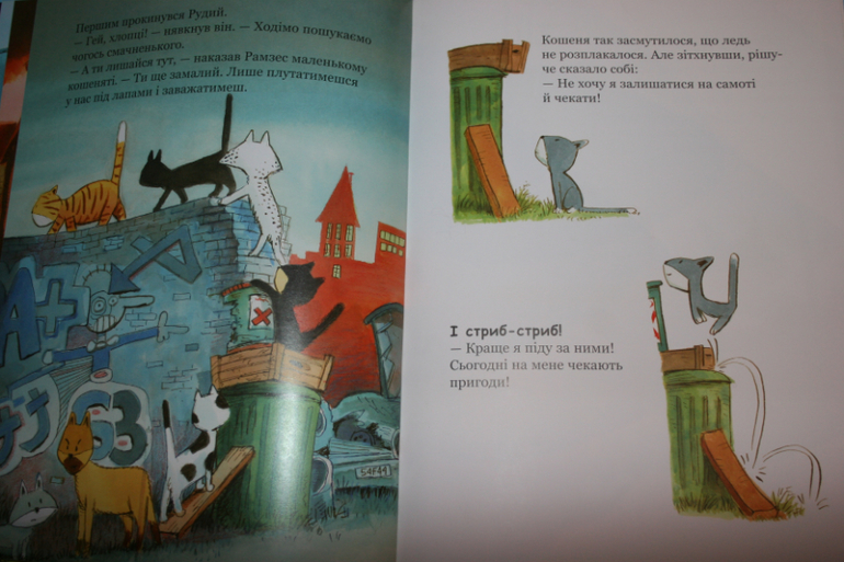 "Котячу банду" заказывала наугад, рассчитывая, что история о котах уж точно понравится. Книга сразу стала хитом. Правда история в ней далека от литературного шедевра и большого ума. Маленький котенок и большой шалун пошел за бандой взрослых котов, чтоб добиться признания. Те заработали себе проблем по ходу, и малыш, проявив смекалку и всю свою дурость, спас их от заточения в мусорном контейнере. Дети "читают" историю уже наизусть. Ну и ладно, главное, чтоб им нравилось. Рисунки хороши.