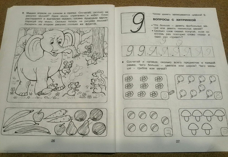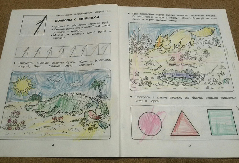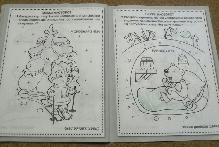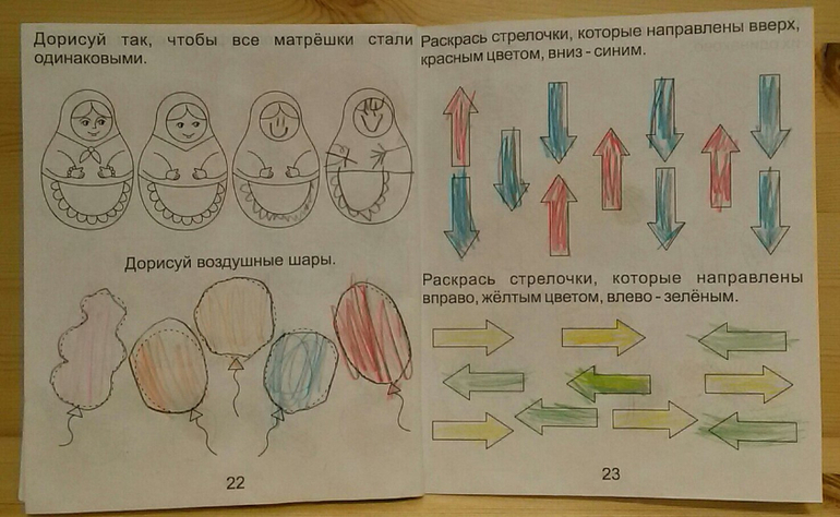 Самые сложные для дочки были задания в конце на развитие логики и речи, когда нужно сказать наоборот. Она и сейчас не заменит сходу два слова "тихая" и "ночь" на противоположные, чтобы получилось "шумный день". В остальном тетрадка очень хорошая, особенно если ваш ребенок любит раскрашивать.