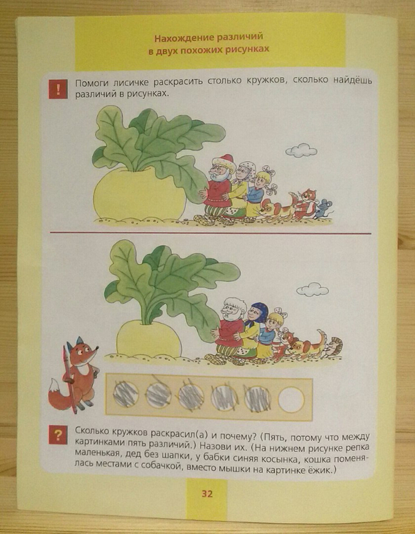 Дочка правда сначала находила 3-4 отличия и теряла интерес к заданию. Мы могли несколько раз возвращаться к одной и той же странице. Я особо не настаивала, а она либо натренировалась, либо доросла, но теперь это одно из ее любимых заданий в детских журналах и она довольно быстро находит отличия. Кстати ребенок должен обязательно объяснять, какие именно элементы у изображений разные.