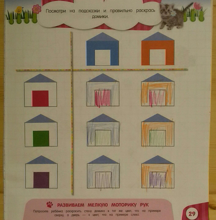 Какие-то задания в этой тетради решались с легкостью. Особенно мы поднаторели в поиске отличий. Но некоторые нам дались с трудом. Обвести, объяснить, пройти лабиринт это дочка запросто, такие задания ей нравятся. Но раскрасить, нарисовать и тем более дорисовать по образцу дочка не любит категорически. Только сейчас, спустя год дочка начала спокойно относится к этим упражнениям, но от раскрашивания иногда все равно отказывается.
