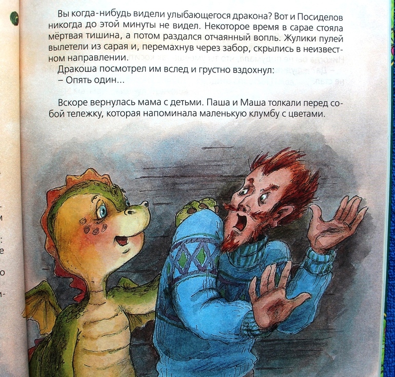 Смеяться, нет - хохотать мы начали с первых страниц. Начало просто фееричное: знакомство папы с Дракошей до боли в животе просто... а жулики... вот отрывок: