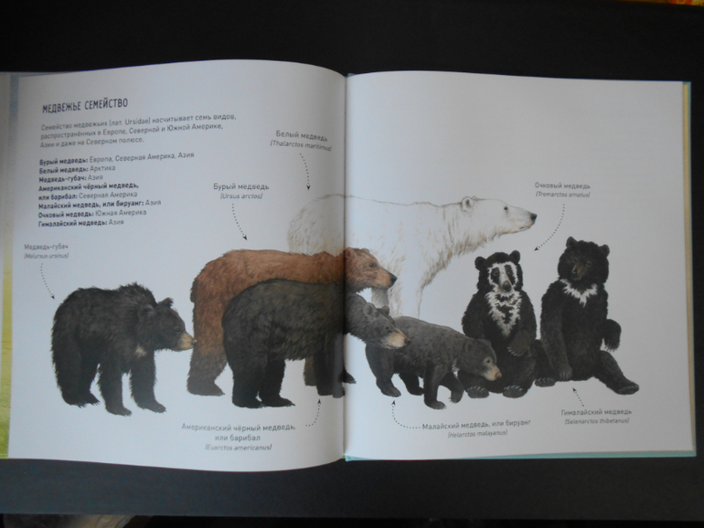 Книга же знакомит нас с повадками настоящего медведя. На 32 страницах уместилось много интересного из жизни медведей - где живет зверь, как выглядит, как зимует, как проводит свой день, чем питается, кого стоит опасаться,да-да, волки,рыси и даже лисы могут нападать на медвежат, пока мама-медведица добывает пищу. А так же из книги можно узнать как уживаются медведи друг с другом, как появляются и растут медвежата, оказывается, медведица прерывает спячку, чтобы принести потомство, а новорожденный медвежонок весит всего 400 грамм!