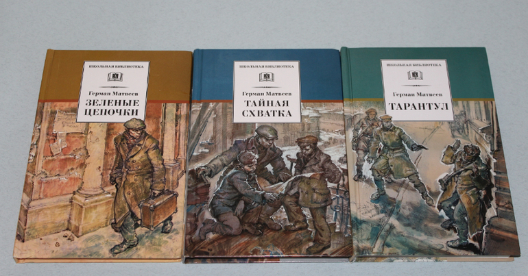 "Мне понравилась трилогия Матвеева "Зелёные цепочки". Очень интересный сюжет. В книгах рассказывается о том, как подростки помогали ловить предателей Ленинграда, а значит и всей нашей Родины. Сначала они ловили ракетчиков и сами сбрасывали зажигательные бомбы с крыш домов! Потом им стали поручать всё более ответственные и опасные задания. Миша в команде ребят был главным, потому что он был самым ответственным, умным, смелым и серьёзным. Во второй книге Мишу внедрили в шайку предателей, главарём в шайке был сын Тарантула, за которым охотилась контрразведка. Окончание рассказывать не буду, а то читать не интересно будет.