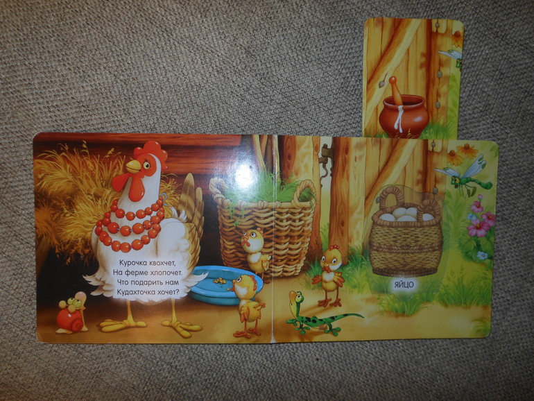 *Тут задвижки привлекли наше внимание. Вот и читаем. Тоже не идеальная книга))) Ведь увидев, что на рисунке шарф и шапка, ребенок не ответит "шерсть". Но это я, наверное, придираюсь))) Рисунки отличные