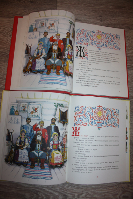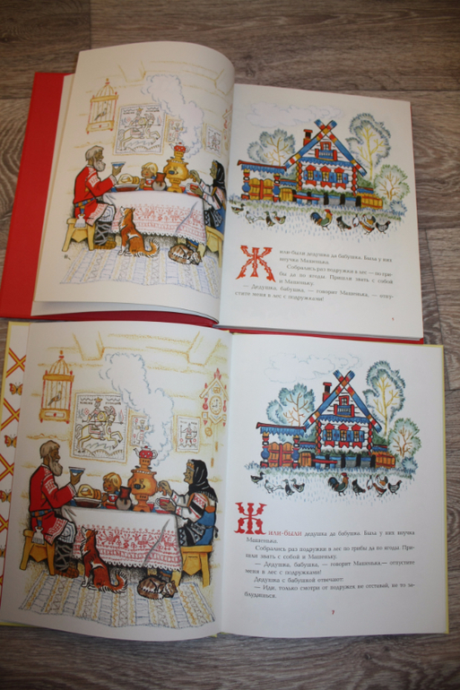 Скажу сразу, картинки все одинаковые, иногда по другому расположены, количество иллюстраций одинаково, буквицы разные: