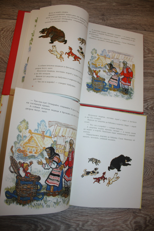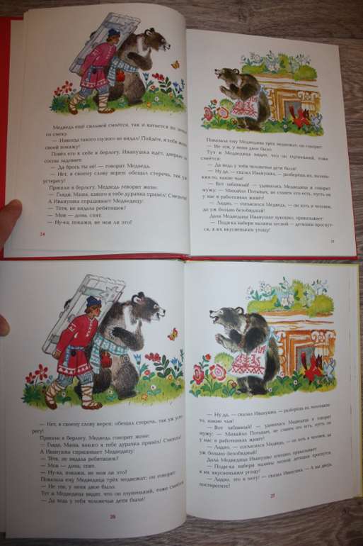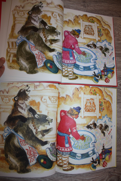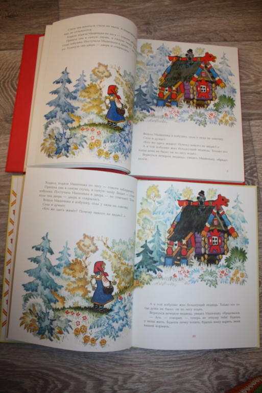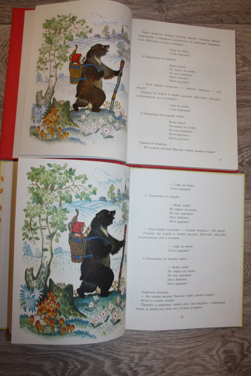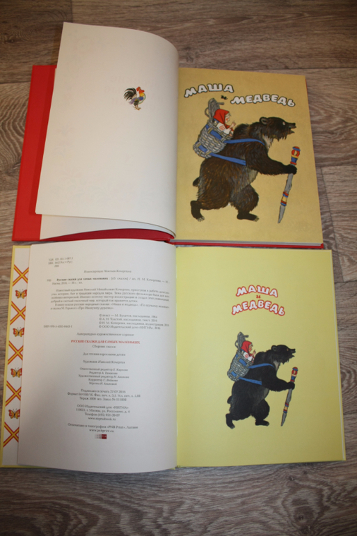 Далее пошли сказки. Маша и медведь. У Речи медведь крупнее, вроде как лучше смотрится, у Нигмы слева выходные данные: