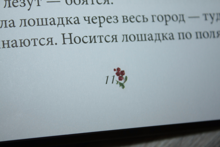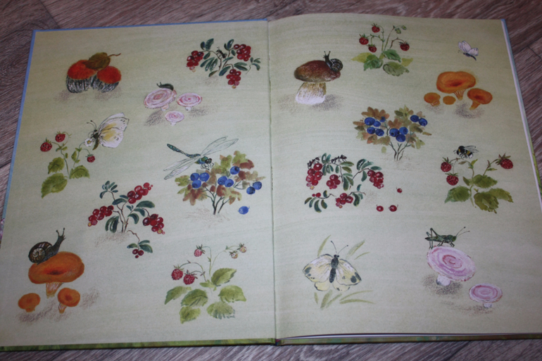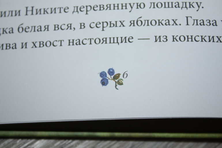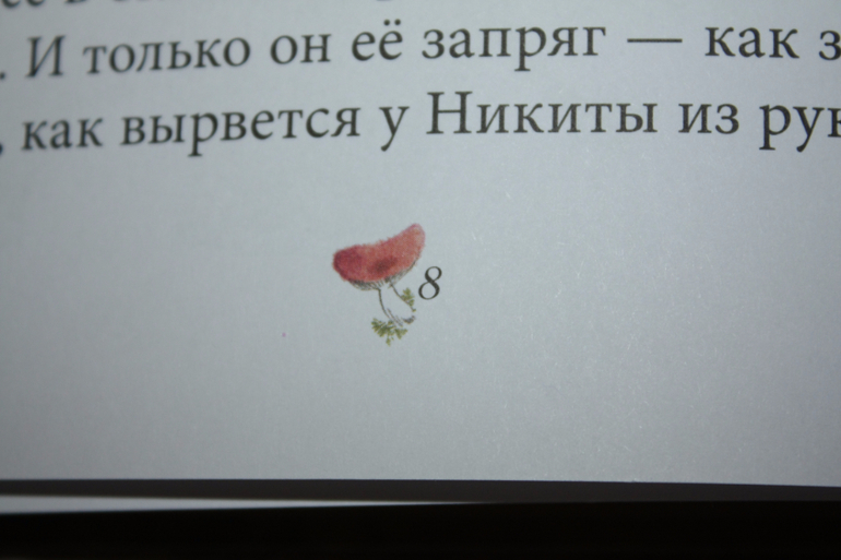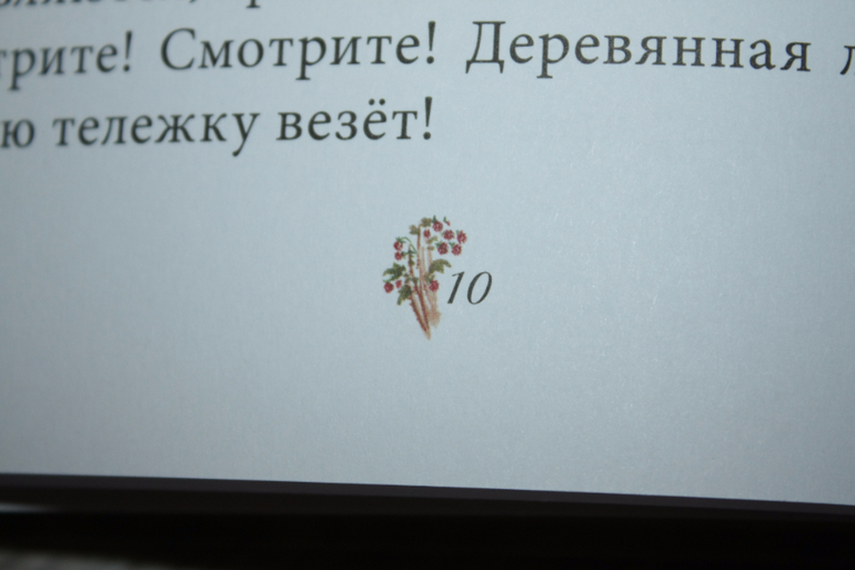 Что мне особо понравилось, так это оформление номеров страниц. Рядом с каждой цифрой небольшая картинка, на каждой странице разная! Цветочек, грибочек, веточка, листочек, ягодка.