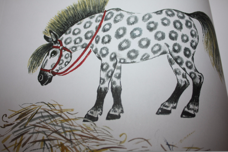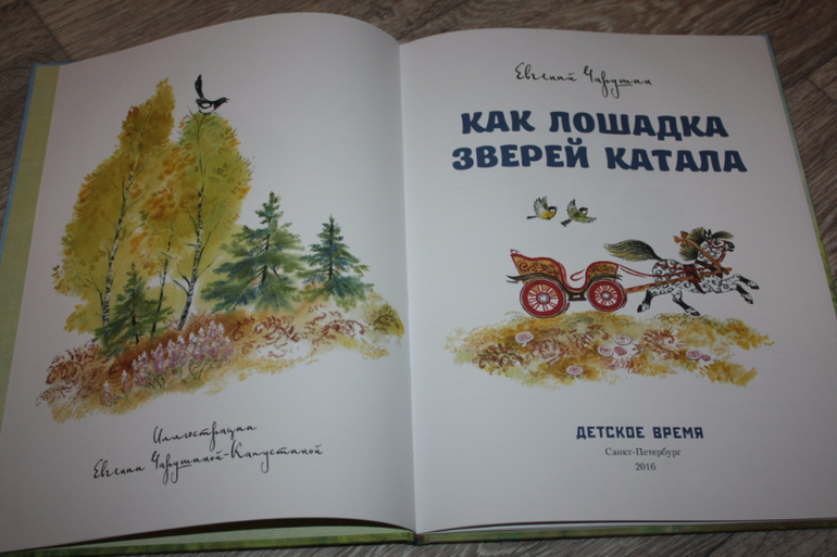 Про лошадку иллюстрировала правнучка Евгения Чарушина - Евгения Чарушина-Капустина, об этом сказано во вступительной статье. Представляете как здорово, семейное творчество. Меня тронуло. Иллюстрации просто чудо как хороши! Начинается с красиво оформленного форзаца: