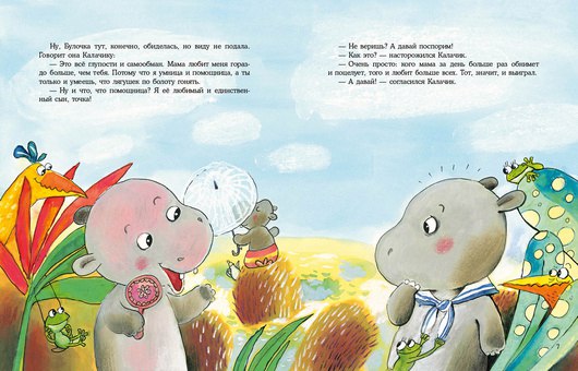 Ох уж эти вечные детские споры о том, кого мама любит больше: "Меня!" - "Нет, меня!" Ситуация знакома всем, у кого есть брат или сестра. Как же разрешится этот спор у бегемотиков Калачика и Булочки? Ведь задача непроста - нужно набрать наибольшее количество поцелуев от мамы. Но Калачик не любит эти девчачьи нежности и мама об этом знает! Однако у него всё получится. И у Булочки тоже- А как именно это произойдёт, узнаете, прочитав сказку Анны Никольской.