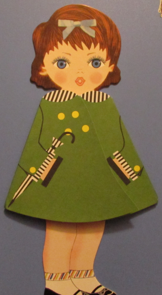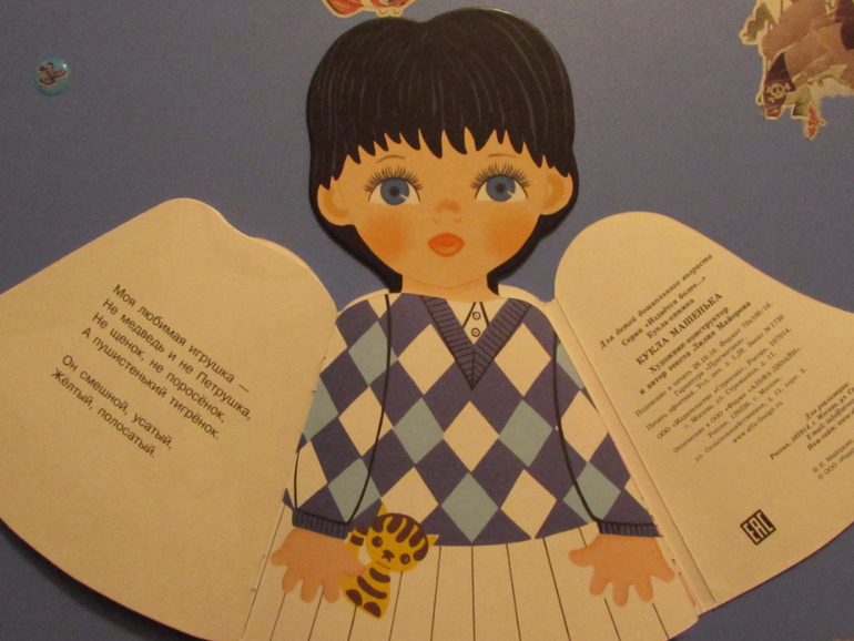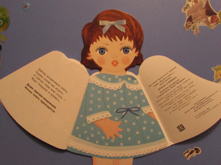 Если книга закрыта, то получается, что пальтишко-обложка как бы застёгнуто. У «Оленьки» и у «Машеньки» внутри книжки разные наряды.
