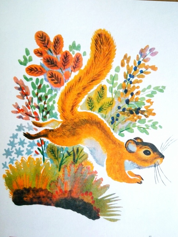 Книга среднего размера, 16 страниц. Бианки написал замечательную, не большую сказку про бурундука и медведя. Иллюстраций много. Есть несколько почти весь разворот. Далее предлагаю просто полюбоваться.