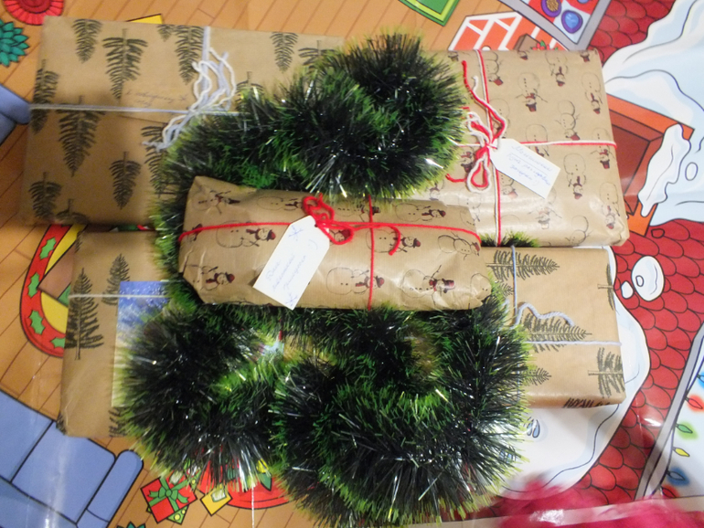 Давно собираюсь и никак не расскажу про замечательные новогодние подарки ,которые нам прислала Юля Графиня.Нет мне прощения за такую задержку с благодарностями,но Юля великодушна-промолчит!