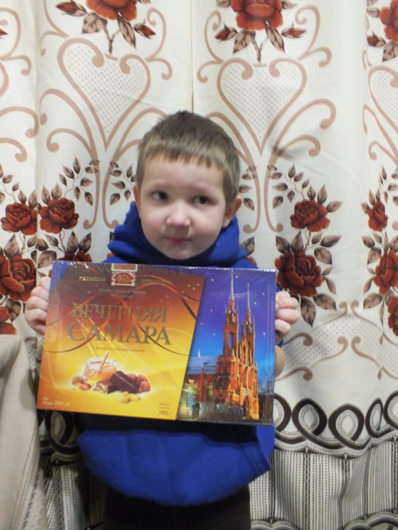 Эта коробочка с конфетами сгладила Олегу печальку от того,что ему костюм Лисенка светит лишь в следующем году.