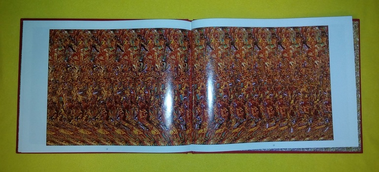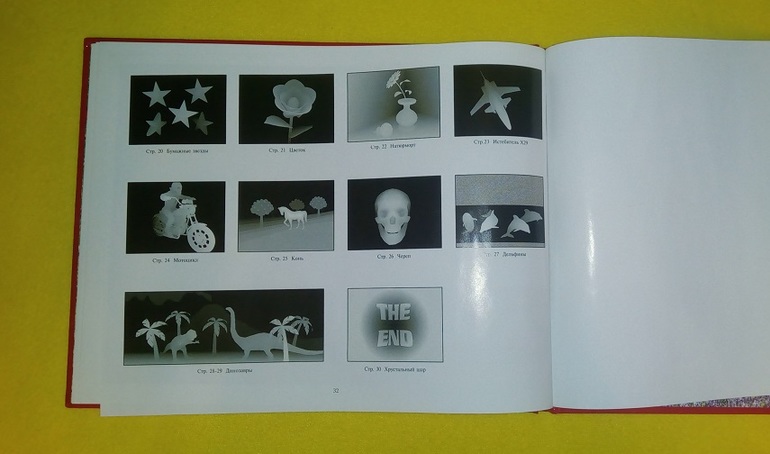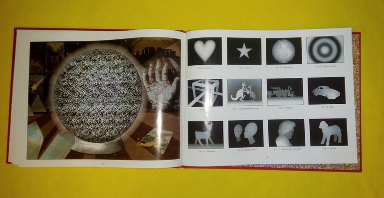Вам предстоит рассмотреть 26 стереограмм. Каждая на отдельном листе. Размер книги не маленький: 28,5 см на 22,5 см.