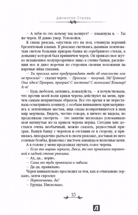 С тех пор, как я добровольно ушла из агентства Локвуда, многое в моей жизни изменилось. Ну во-первых, я стала работать фрилансером, во-вторых, меня едва не убили, а моего призрачного приятеля - череп в банке - похитили. И пришлось мне обращаться за помощью к старым друзьям. Расследование привело нас на черный рынок, где торговали крадеными Источниками с заключенными в них опасными и редкими призраками. И мой череп им пришелся очень даже по вкусу. Но как всегда и бывает, маленькое открытие тянет за собой большое, распутывая клубок преступлений. Кажется, теперь мы вплотную приблизились к разгадке Проблемы - нашествию призраков на Англию. Но правда бывает слишком опасной, особенно, если двое бесстрашных агентов, каковыми мы с Локвудом и являемся, отважатся заглянуть за грань - в мир призраков.