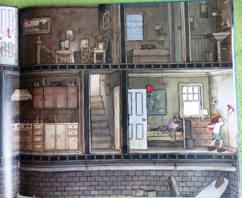 Посмотрим, как автор пытается передать это своими иллюстрациями. В роли родителя здесь выступает папа девочки, а у девочки в руках все тот же красный мелок, что и в предыдущих двух книгах трилогии.