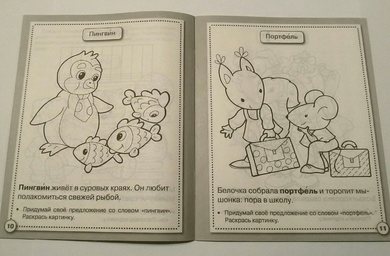 Все картинки в тетради черно-белые, предназначены для раскрашивания, что способствует развитию мелкой моторики ребенка.