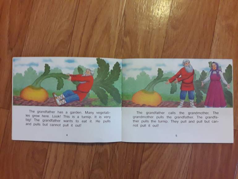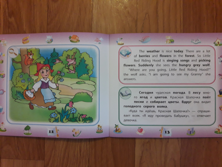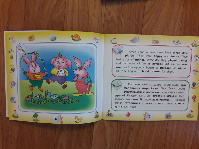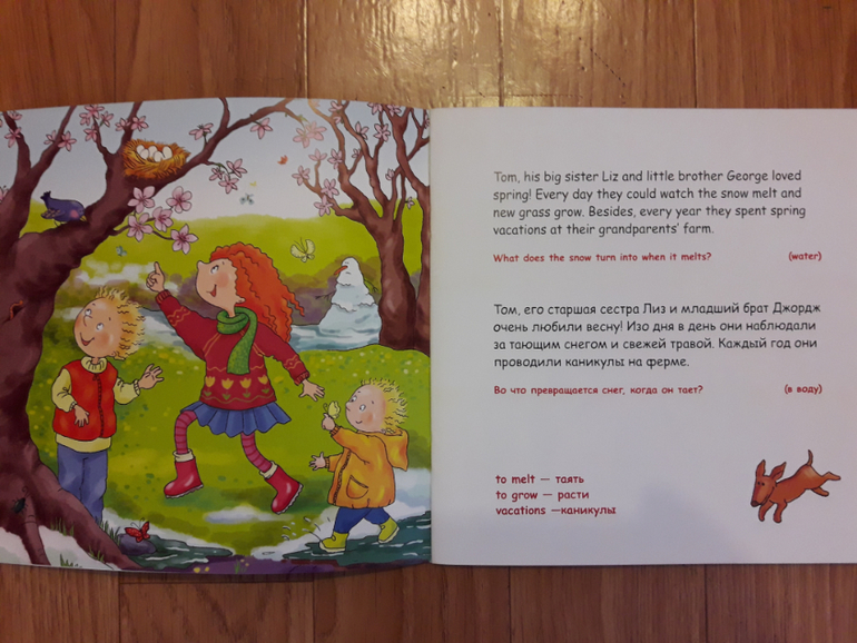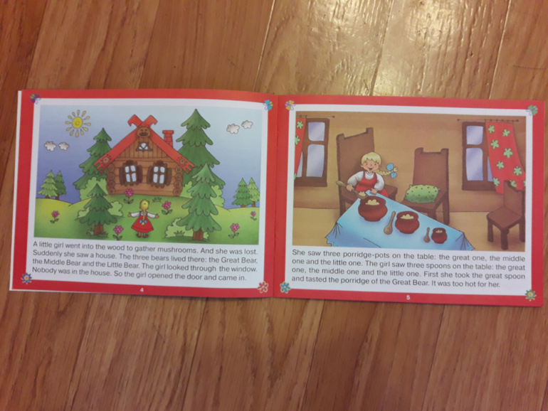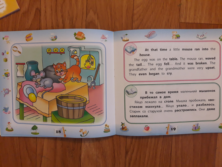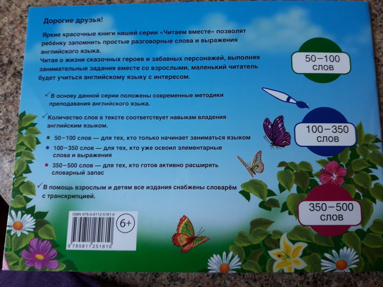 Именно в этих книгах мне больше всего нравится текст. Довольно-таки прост , как раз для ребёнка, который только начинает знакомиться с английским языком, ничего лишнего, никаких сложных оборотов речи, но в то же время позволяет ребёнку познакомится с первой грамматикой английского языка. Кроме того, книги делятся на 3 уровня. Мы пока освоили только зелёный и синий уровни. Сыну 3 года 9 месяцев.
