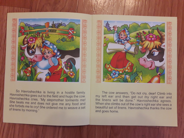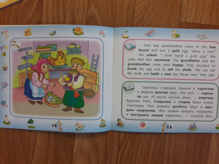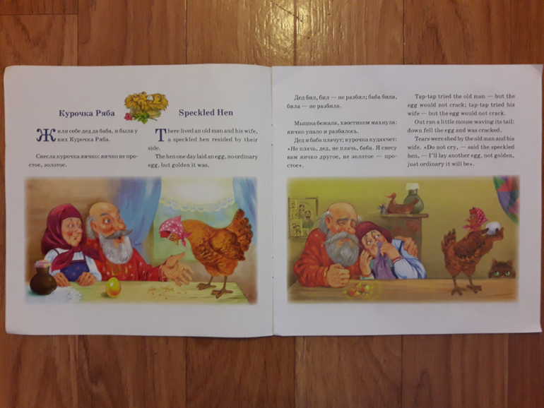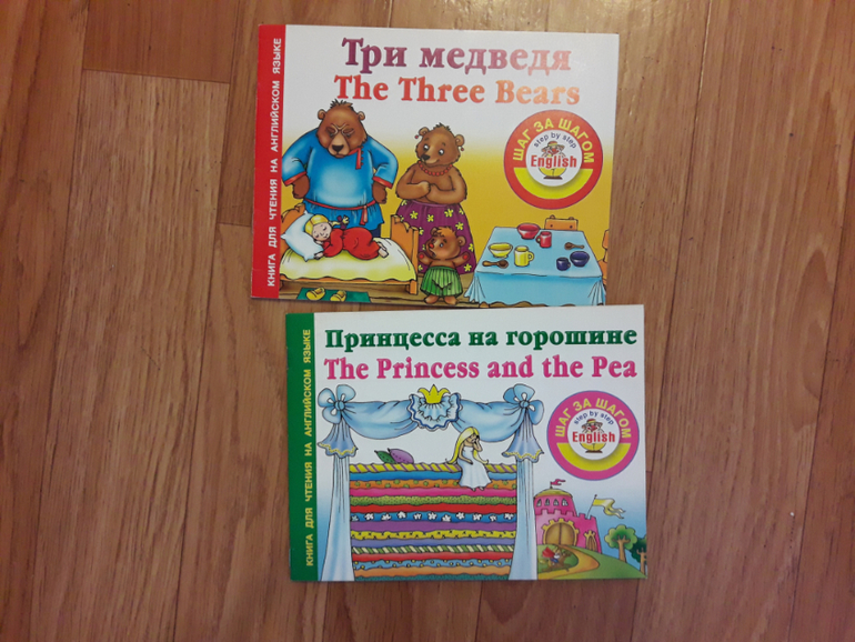 Вот книжечки дешёвенькие, но совсем неплохие. Здесь представлены наши любимые русские народные сказки на английском языке : "Крошечка-Хаврошечка", "Сивка-Бурка", "Морской царь и Василиса Премудрая". И текстом, и иллюстрациями мы с сыном довольны.