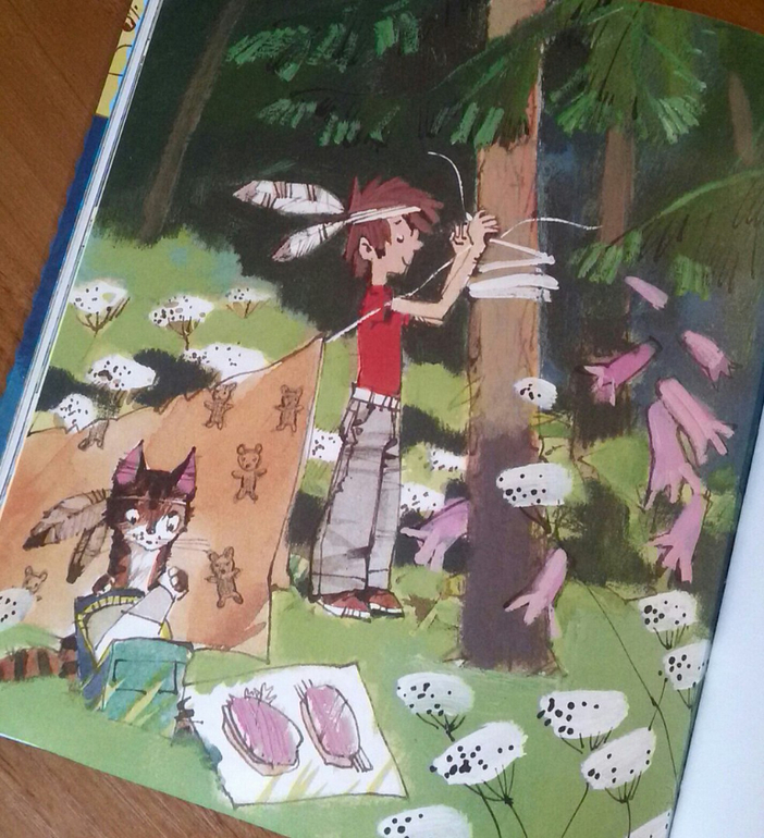 Еще одной загадкой для меня осталось, почему у кота есть приемная бабушка, да еще и пожилая собака такса Тильда с очень ворчливым характером. Сей факт я ребенку объяснить затруднилась, а она им очень интересовалась. Может быть это современная политика детских книг - написал про кота, упомяни и собаку. Или это иносказание, что любимыми и близкими могут быть не только родные и внешне похожие люди (животные). Для ребенка все осталось очень туманно в данном вопросе, а муж просто махнул рукой и тихонько надо мной поржал.