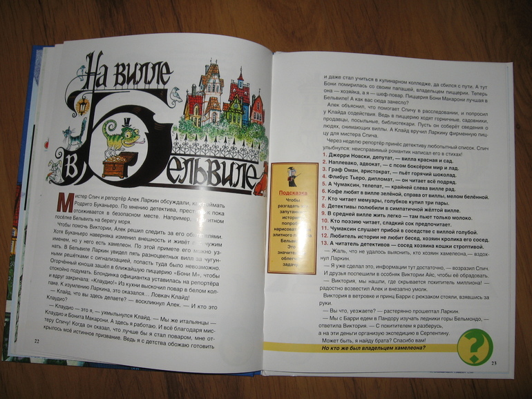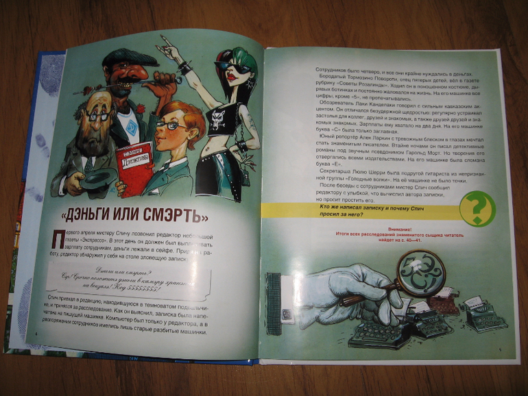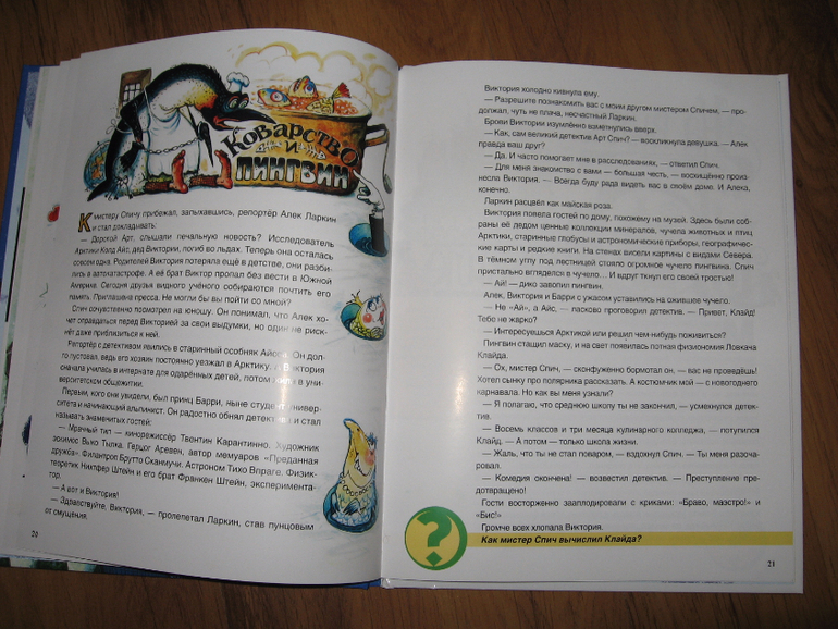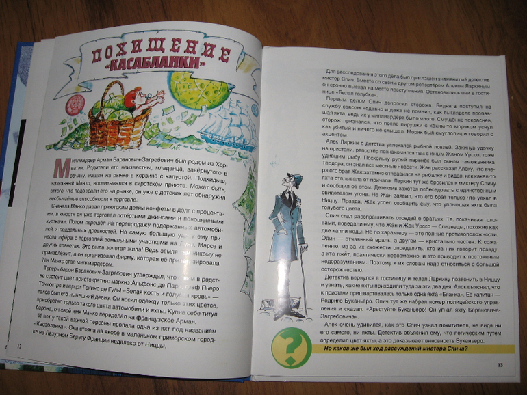 Начинается книга довольно сомнительно и правильный ответ на первое расследование Спитча с помощью логики дать практически не возможно, придется подглядывать в ответы. Они, кстати, даны в конце книги. И соблазн подглядеть в них походу книги есть. У меня, по крайней мере, был)))