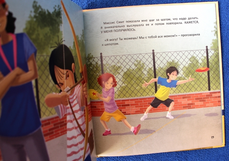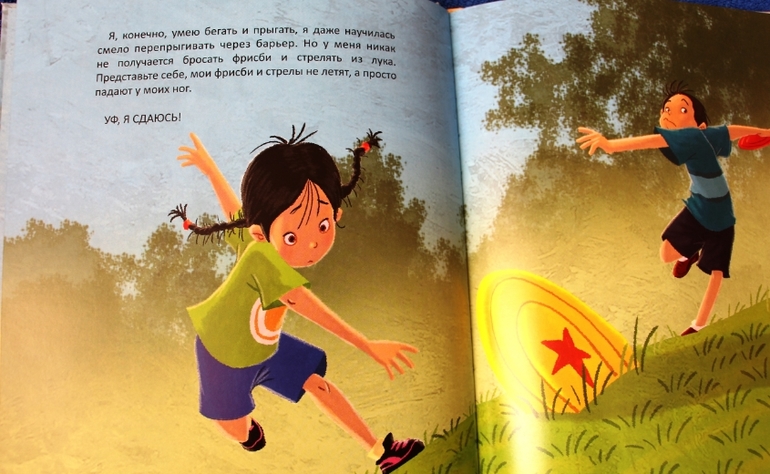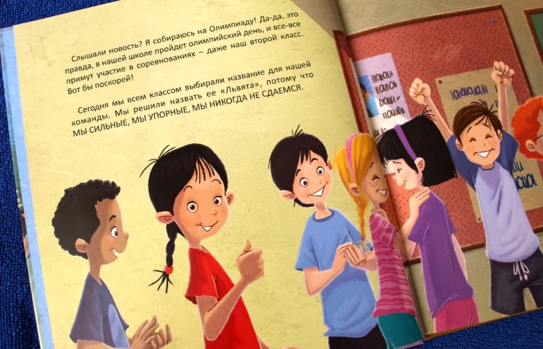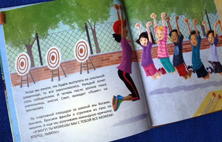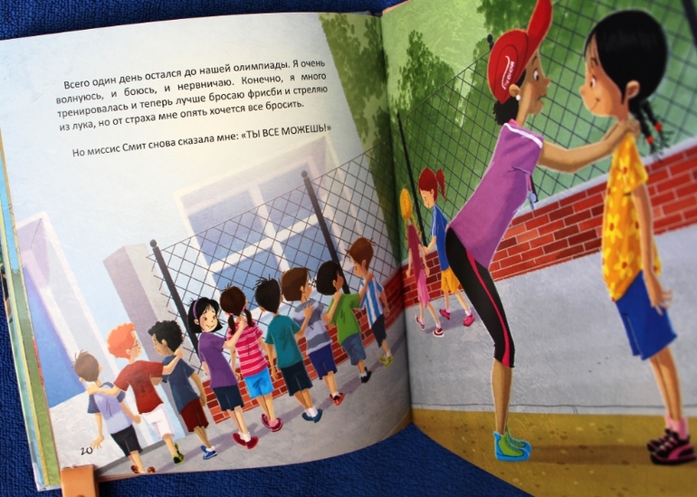 Ребята в книге готовятся к школьной спортивной олимпиаде и наша героиня не уверена, что справится. Дальше мы читаем, как ее подбадривают, как она все слова воспринимает и как старается. Упорство помогает ей справиться, а осознание, что в тебя верят, помогает появиться этому самому упорству и поверить в себя самой.