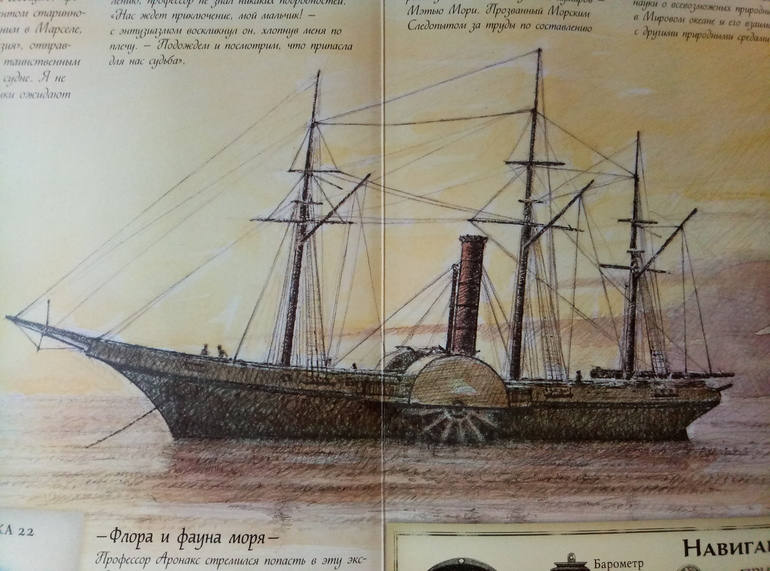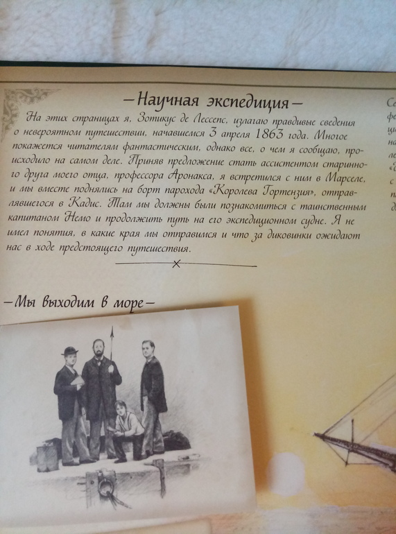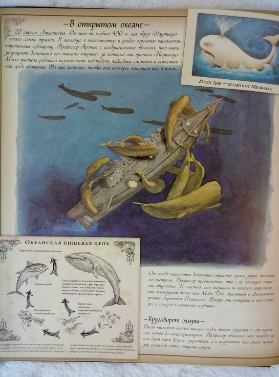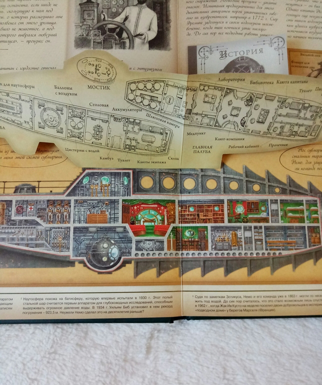 Очень надеюсь, что ребенок в дальнейшем заинтересуется и захочет почитать и про Наутилус, и про капитана Немо. А пока он в восторге от всех этих открывающихся секретиков, вставок и конвертиков.