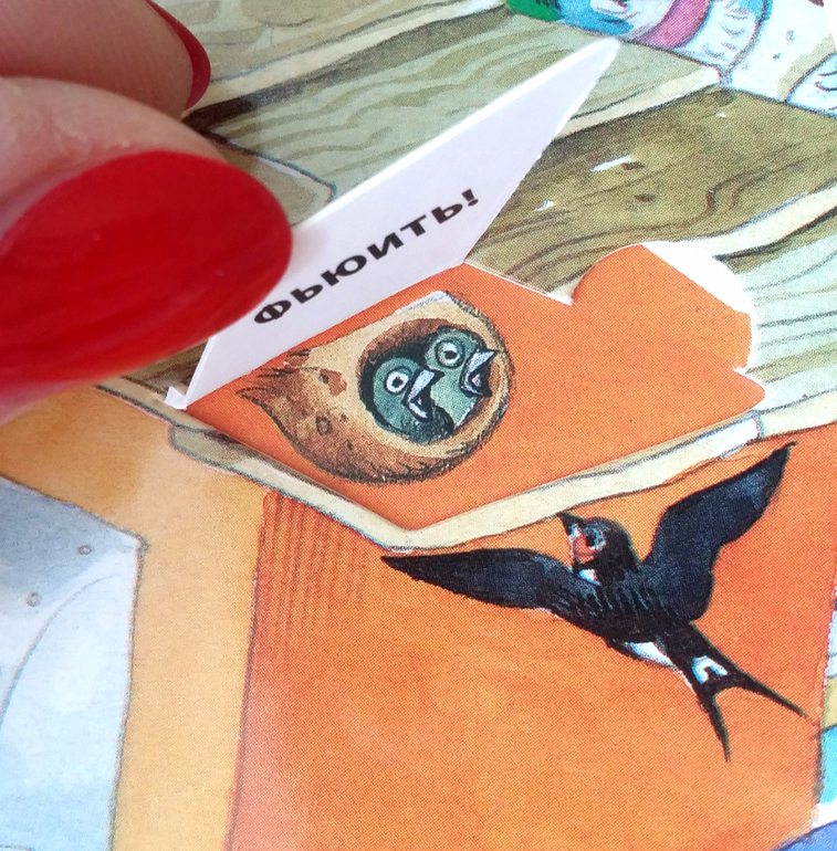 Что касается окошек, кстати. Их не 100. Вот такой вот обман финт ушами :-) Я насчитала 71 штуку. Конечно, это удивляет, но по факту 71 окошка тоже вполне достаточно, нет ощущения, что мало. И сами окошками разные - большинство крупного размера, их удобно находить и открыть. А есть окошки-"секретки" размером с ноготь, не с первого раза можно увидеть и открывать. В общем, книга с сюрпризом получается :-) Окошки в большинстве своем открываются легко, есть, правда, несколько которые "ямочкой" внутрь сделаны - с ними приходится повозиться. В любом случае, для маленького ребенка я бы советовала в первый раз открыть все окошки, чтобы ему было проще в дальнейшем рассматривать книгу.