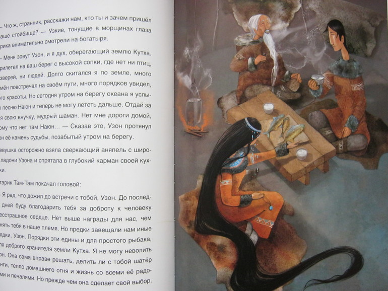 А иллюстрации к сказке как раз такие, которые запоминаются на всю жизнь - и чумы, и нарты, и одежда.