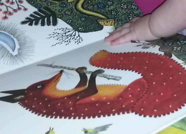 Книга с выдвигающимися элементами, очень много раз в день читали на протяжении всего месяца, я каждого животного озвучивала, у меня дочка аж вздрагивала немного и видимо чтобы пощекотать нервишки))))) несла мне эту книгу снова и снова!