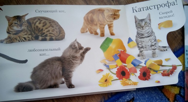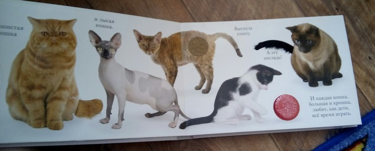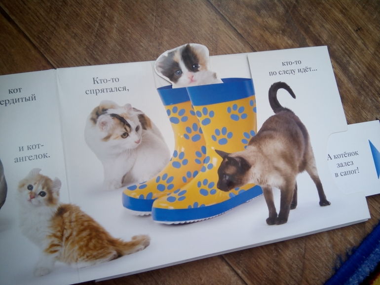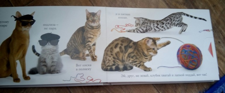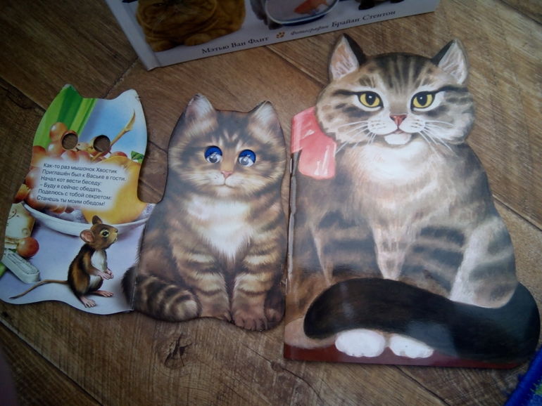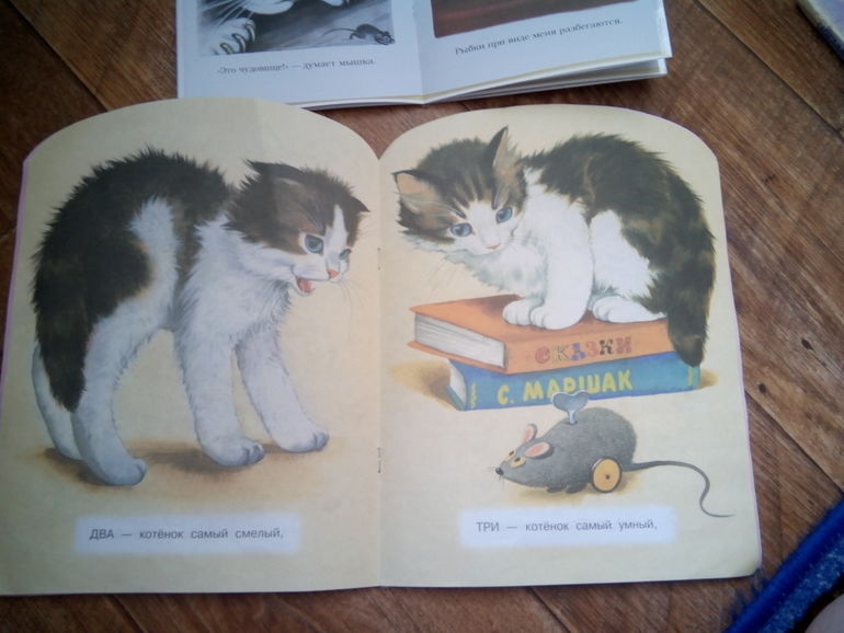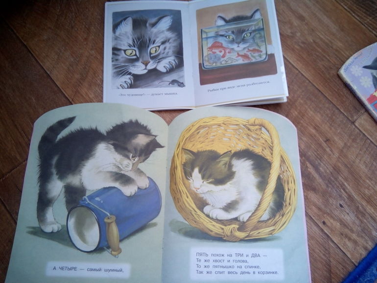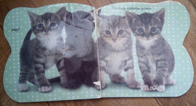 У крайнего правого котенка усы из лески, это просто хит! Любили оба. Порвал старший из ревности что младший очень эту книжку любил( он портит и прячет всё что любит Ден. Увы(