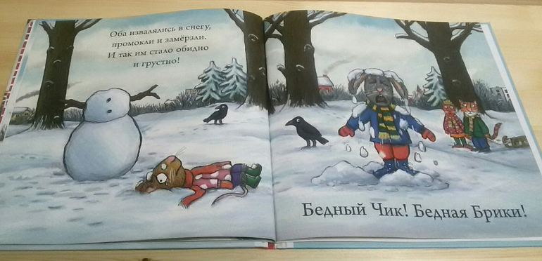 Забавного зайчика Чика и милую мышку Брики придумал и нарисовал всемирно известный художник Аксель Шеффлер. У нас уже есть его знаменитый Груффало. Это была одна из самых любимых дочкиных книг в возрасте лет трех. Да она и сейчас с удовольствием готова его слушать. Чик и Брики ссорятся и мирятся, играют и попадают в разные истории. Совсем как настоящие малыши!