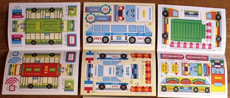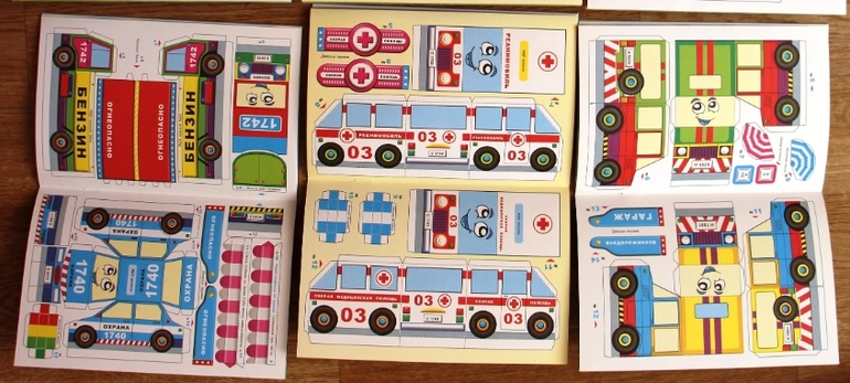 Сами книжки очень замечательные - пишу, основываясь на их подробном изучении и отзывах племяша, который уже одну воплотил в жизнь. Инструкции понятные, схемы удачные и простые, бумага для машинок достаточно плотная. Серия состоит из 10 книжек, т.е. можно сделать 20 машинок.