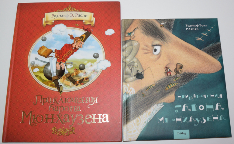 Рома говорит, что книгу взял почитать, так как нечего было читать. На самом деле, раз уж на то пошло, накануне в машине мы слушали Детское радио. И там читали Каштанку, рассказывали о Чехове. По этой причине, думаю,ранним утром и выбрал на полке именно эту книгу.6. Р.Распе: Приключения барона Мюнхаузена - решила поменять нашего старого Мюнхаузена на издание ТриМаг. А Ромка, не долго думая, перечитал эти истории. Теперь в новом оформлении.