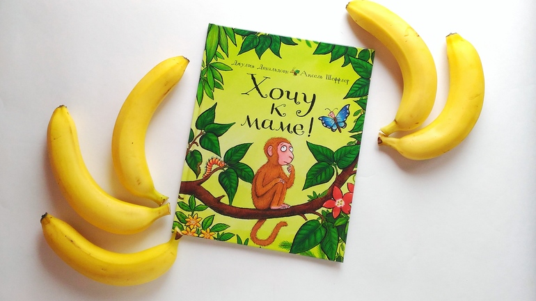 Книга "Хочу к маме!" Дональдсон-Шеффлера (ссылка), о которой расскажу сегодня, нежно любима нами с дочкой обеими. Под обложкой - милейшая добрая история, написанная с юмором и переведенная в хороших стихах. Сюжет мне чем-то напомнил хотя, похоже, мне одной историю про мамонтенка и его маму. Маленькая обезьянка потеряла маму и на помощь в поиске ей пришел мотылёк: