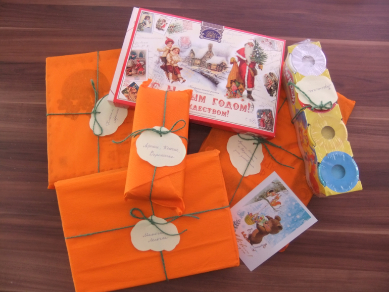 Вот такие замечательные, солнечные, с любовью запакованные подарки мы вытащили из посылки.