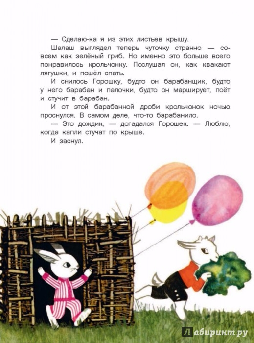 Весёлые поучительные сказки для детей младшего дошкольного возраста о крольчонке Горошке и его друзьях. Красивые цветные иллюстрации Ханны Чайковской, ориентированные на детское восприятие. Книги Хелены Бехлеровой отмечены премиями, наградами, переведены на множество языков. Идеально для первой самостоятельно прочитанной книги! С домика кролика Горошка съели крышу из капустного листа! Как же быть? Может быть построить невкусную крышу? Приключения игрушечных зверят, которые могут говорить, проказничать и живут своей интересной сказочной жизнью. Простые и поучительные сказки писательницы и переводчицы Хелены Бехлеровой (1908-1995) очень любят малыши.